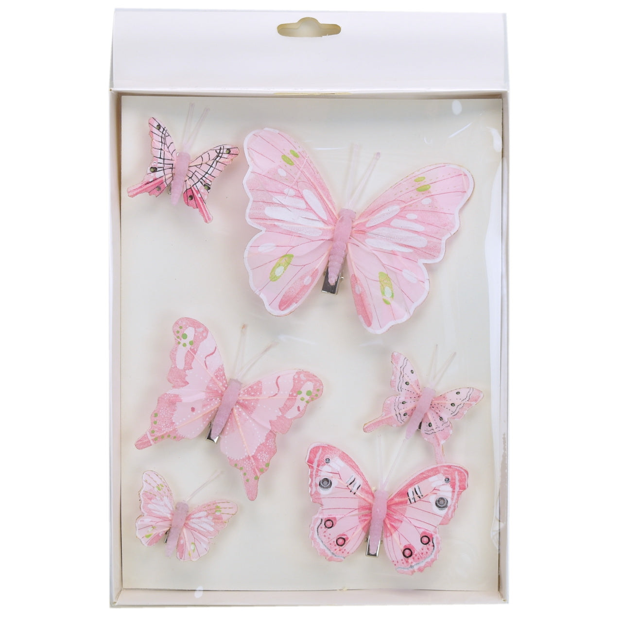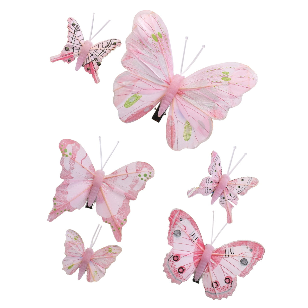 Sada 6 ks dekoračních motýlků v růžové barvě je přesně to, co potřebujete pro vytvoření úžasné atmosféry. Tyto motýlky mají kovový skřipec, který jim dodává stabilitu. Jsou vyrobeny z kvalitního textilu, plastu a kovu.